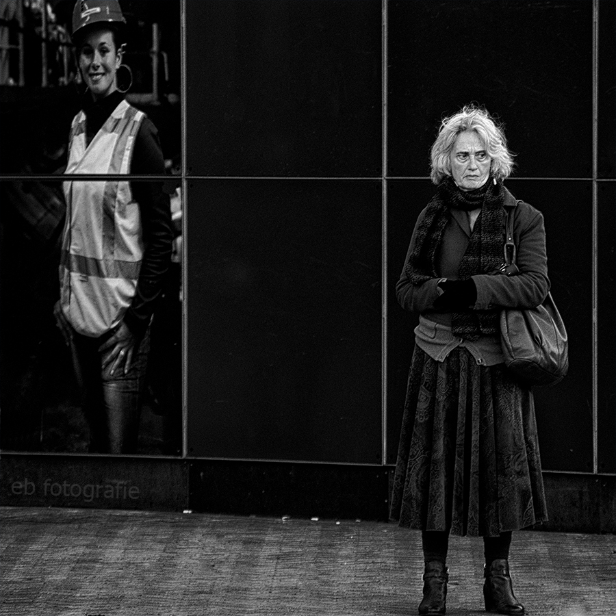 First picture I saw was this lady, a little older I guess, and this billboard about an exhibition on the past called "Het geheugenpaleis" or in English "The palace of memories".